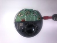 Remove the cover on the bottom of the Echo Dot by using a guitar pick or flat bladed tool. Be careful with any sharp objects. If you don't use a heat gun, pry it off with a flathead screwdriver.