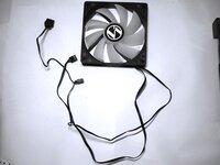 Take the thinner fan cord (as shown in Photo 1) and follow it down until you reach the indicated connector (as shown in Photo 2).