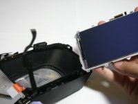 Gently pull out the ribbon cable. Due to the connectors being staggered you can't really have the cable out straight away from the headset.